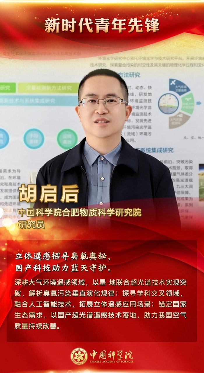 作为大气环境领域的青年科研骨干,胡启后长期从事大气污染超光谱立体遥感和立体监测数据人工智能解析相关研究,瞄准污染物垂直演化、高空传输定量评估等大气污染防治中的关键科学难题,研发了臭氧无盲区垂直廓线超光谱遥感探测技术、基于立体遥感观测的大气污染三维重构技术,并将国产超光谱技术成果应用于我国大气环境治理工作,助力空气质量持续改善。