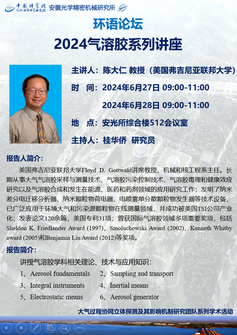环语论坛:2024气溶胶系列讲座(6.27/6.28)
