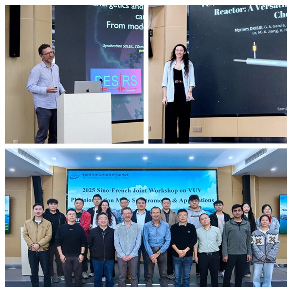 Garcia博士带来题为《基于法国SOLEIL同步辐射光源真空紫外光束线(DESIRS VUV)的阳离子解离动力学:从模型体系到聚集体》的报告。他介绍DESIRS VUV波荡器光束线和电子离子符合质谱实验装置,分子吸收真空紫外光子后制备出具有量子态选择的离子体系,展示了团队近期研究的多个阳离子解离案例,包括CH3I+、c-C3H5+等模型分子,以及多环芳烃聚集体、腺嘌呤-胸腺嘧啶DNA碱基对等实际体系,并阐述了上述离子在等离子体、火焰和环境化学体系中的关键作用。