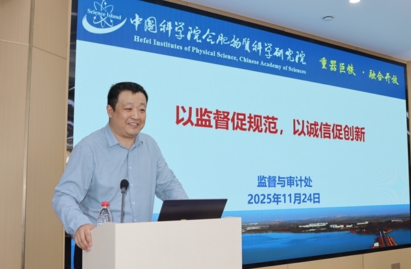 11月24日,安光所邀请合肥物质院监审处王杰处长一行4人到所进行科研诚信宣贯,所纪委书记熊伟主持会议。纪委成员、各支部纪检委员、财务助理及研究生代表80余人参加本次宣贯会。