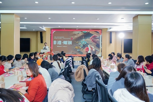 3月6日,在非遗螺钿手工教学与制作现场,由非遗讲师授课,详细讲解了螺钿工艺的历史渊源、文化内涵及制作技巧。据悉,螺钿工艺距今已有3000余年历史,是中国特有的传统装饰工艺,以天然贝壳为原料,经打磨、切割、镶嵌等多道工序制成,兼具实用与艺术价值,已被列入国家级非物质文化遗产名录。教学现场,讲师耐心示范每一个步骤,从图案的勾勒到螺片的镶嵌,细致解答女职工们的疑问。女职工们亲手操作实践,小心翼翼地拼接图案,在一粘一嵌中,感受非遗工艺的匠心与魅力。现场氛围温馨融洽,经过一个多小时的精心制作,一件件独具特色、流光溢彩的螺钿手工作品相继完成,让大家在沉浸式体验中传承了中华优秀传统文化。