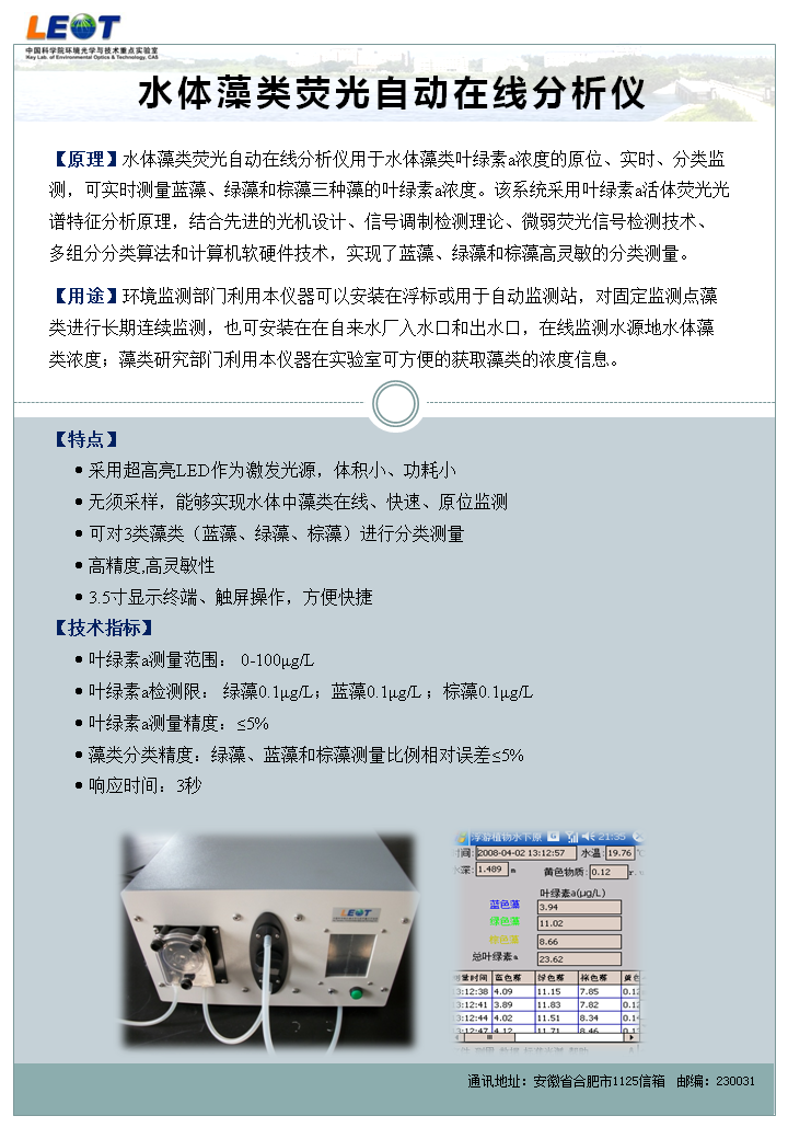 水体藻类荧光自动在线分析仪