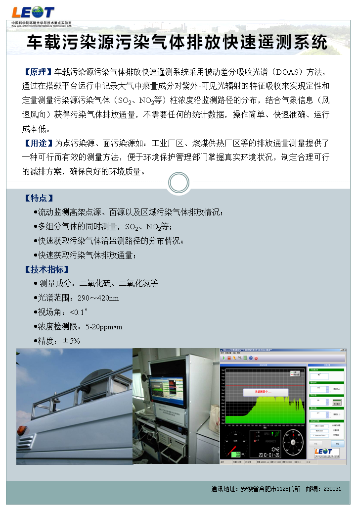 车载污染源污染气体排放快速遥测系统